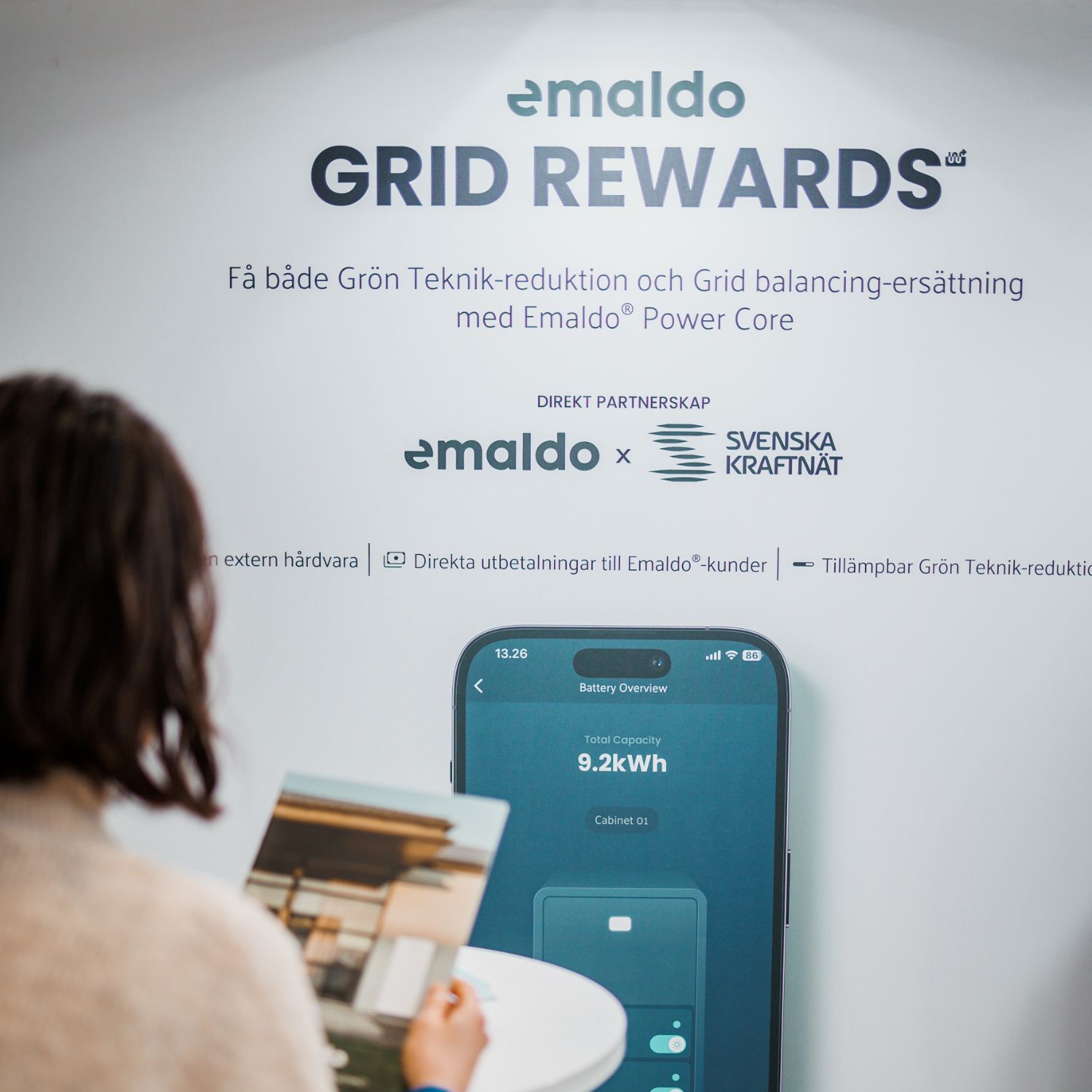 Ved gratis tilmelding til Emaldo® Grid Rewards hjælper du ikke kun med at stabilisere det offentlige elnet og sikre dets effektivitet, og dermed også bidrager til den grønne omstilling, du vil også blive væsentligt kompenseret for at gøre det. Se hvor meget her.